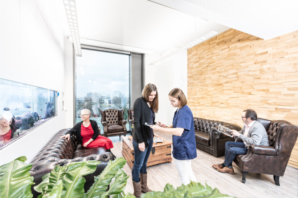 Wir behandeln jeden Patienten von der Terminvergabe bis zur Nachsorge mit größter Sorgfalt. Dazu gehört eine entspannte Atmosphäre mit ausreichend Zeit, um auf Ihre Bedürfnisse einzugehen.